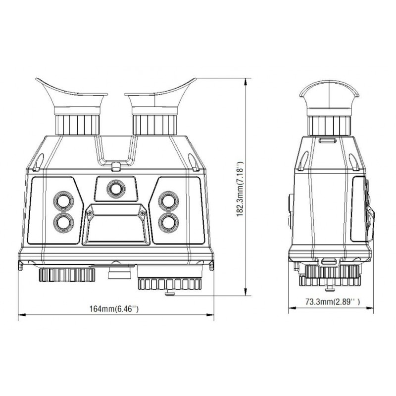 Termovizní binokulár, jádro 640 x 512 VOx, 7 hodin provozu, objektiv 35 mm, 2x-4x digi zoom, displej OLED 1024X768, detekce 1029 m.